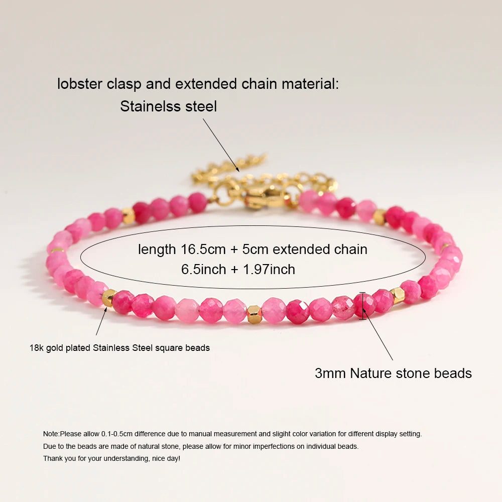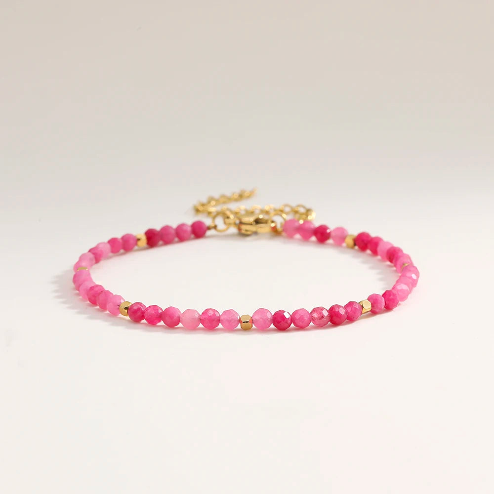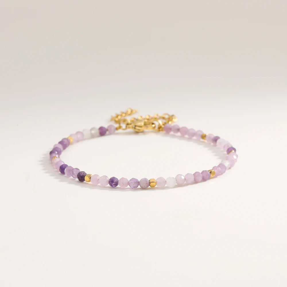 3mm Faceted African Turquoise Bracelet — 18K Gold-Plated Accent - sugilite / 16.5cm
