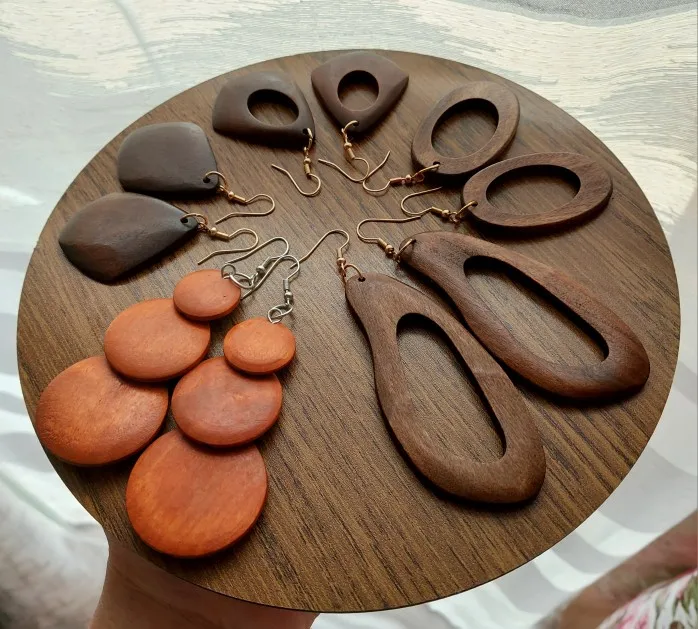 Set Includes: 5x Pairs of Wooden Dangle Earrings