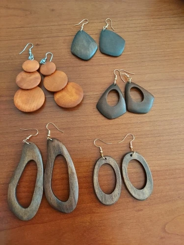 Celebrate the rich, earthy tones and bold geometry of the Turkana people with this essential five-pair set. Crafted from solid wood, each pair offers a unique shape and size, allowing you to switch your look daily. This set is designed to bring an instant touch of grounded, natural elegance and tribal sophistication to your everyday style.