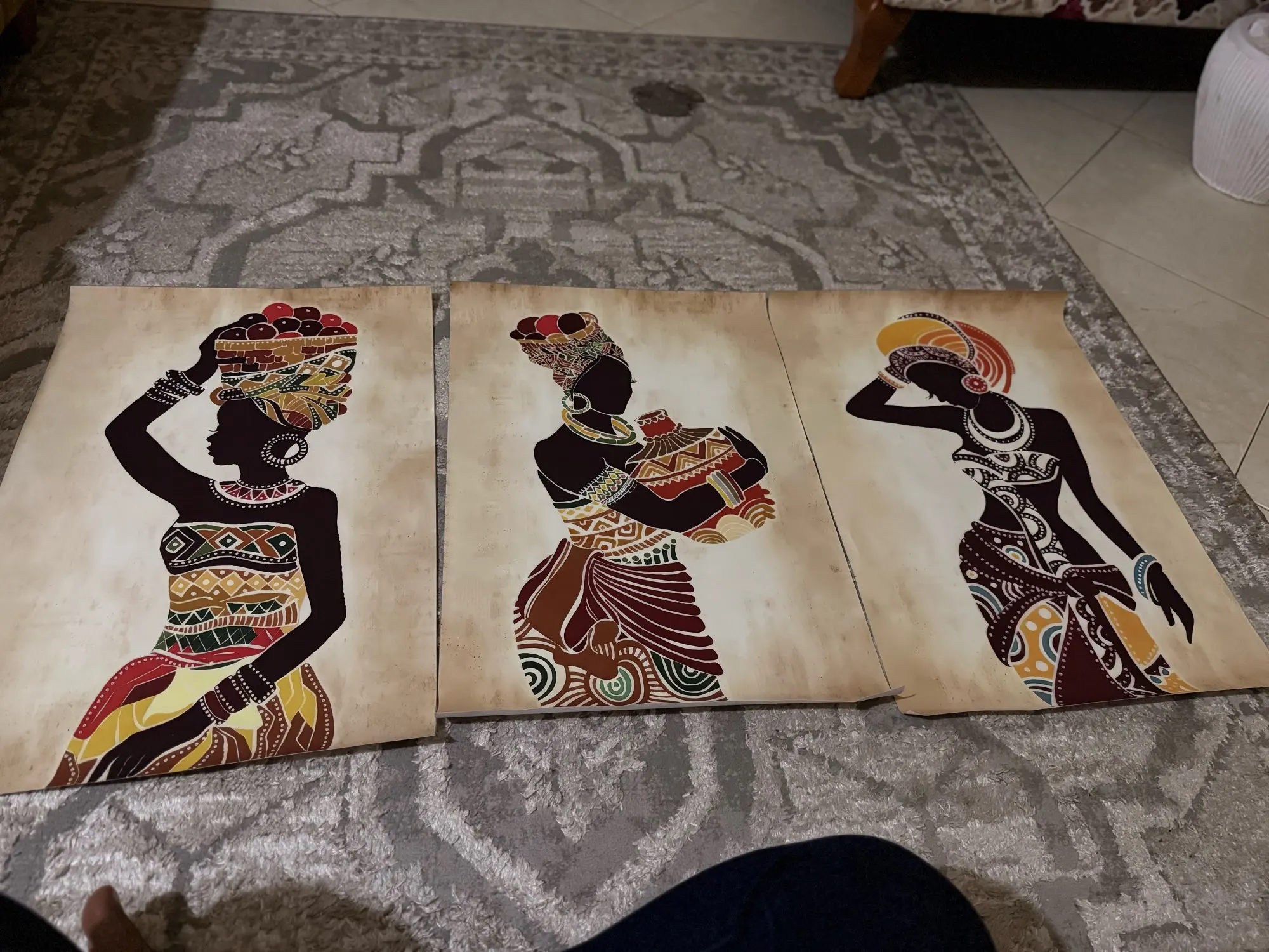 Make a powerful cultural statement with this striking three-piece canvas set. Inspired by the bold, geometric artistry and strong female representation of the Ndebele people, this set celebrates heritage, dignity, and visual rhythm. Designed to be displayed together, these pieces will transform your wall into a gallery of profound beauty and cultural depth.