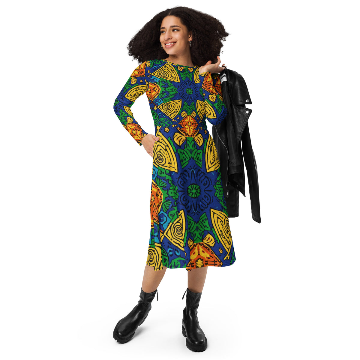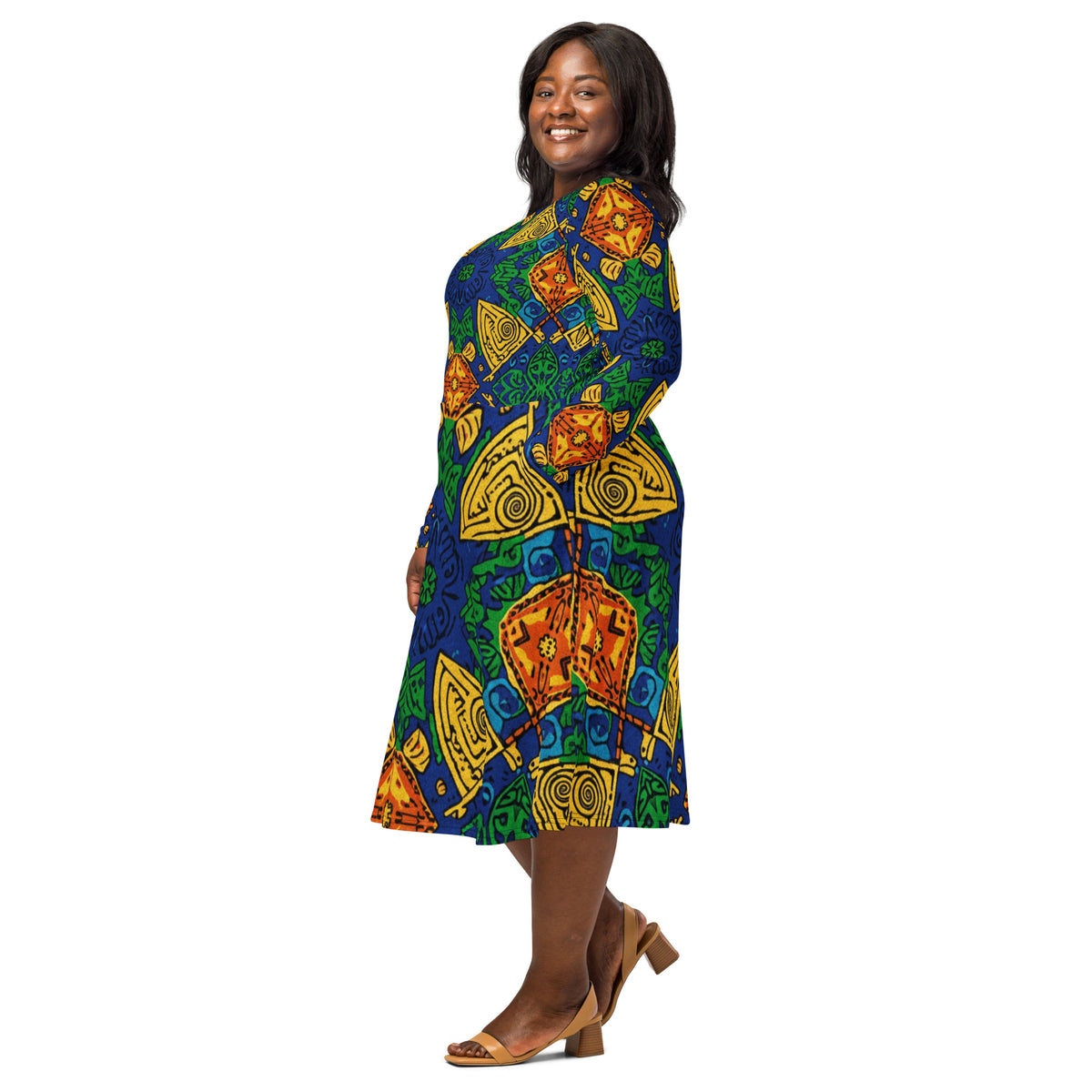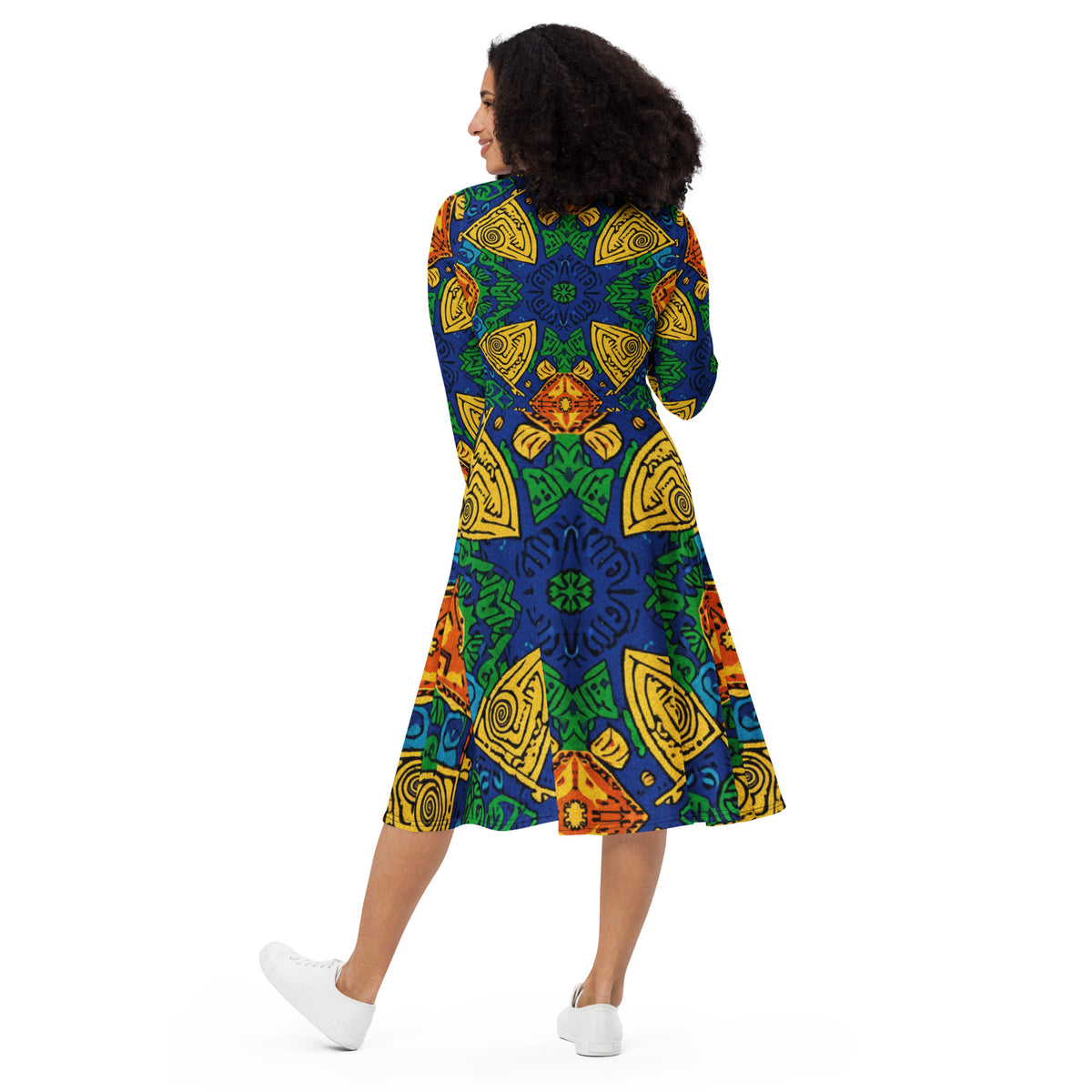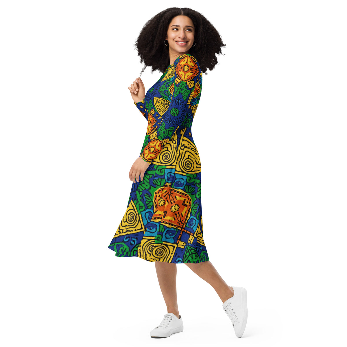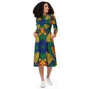 All-over print long sleeve midi dress