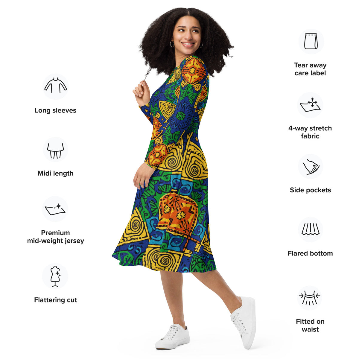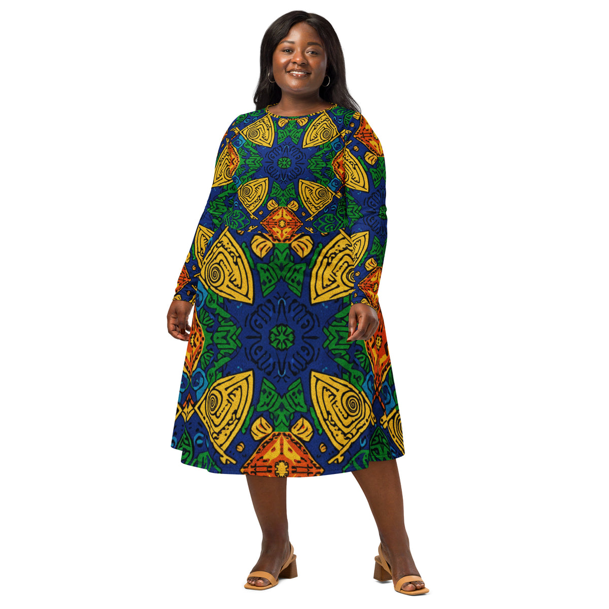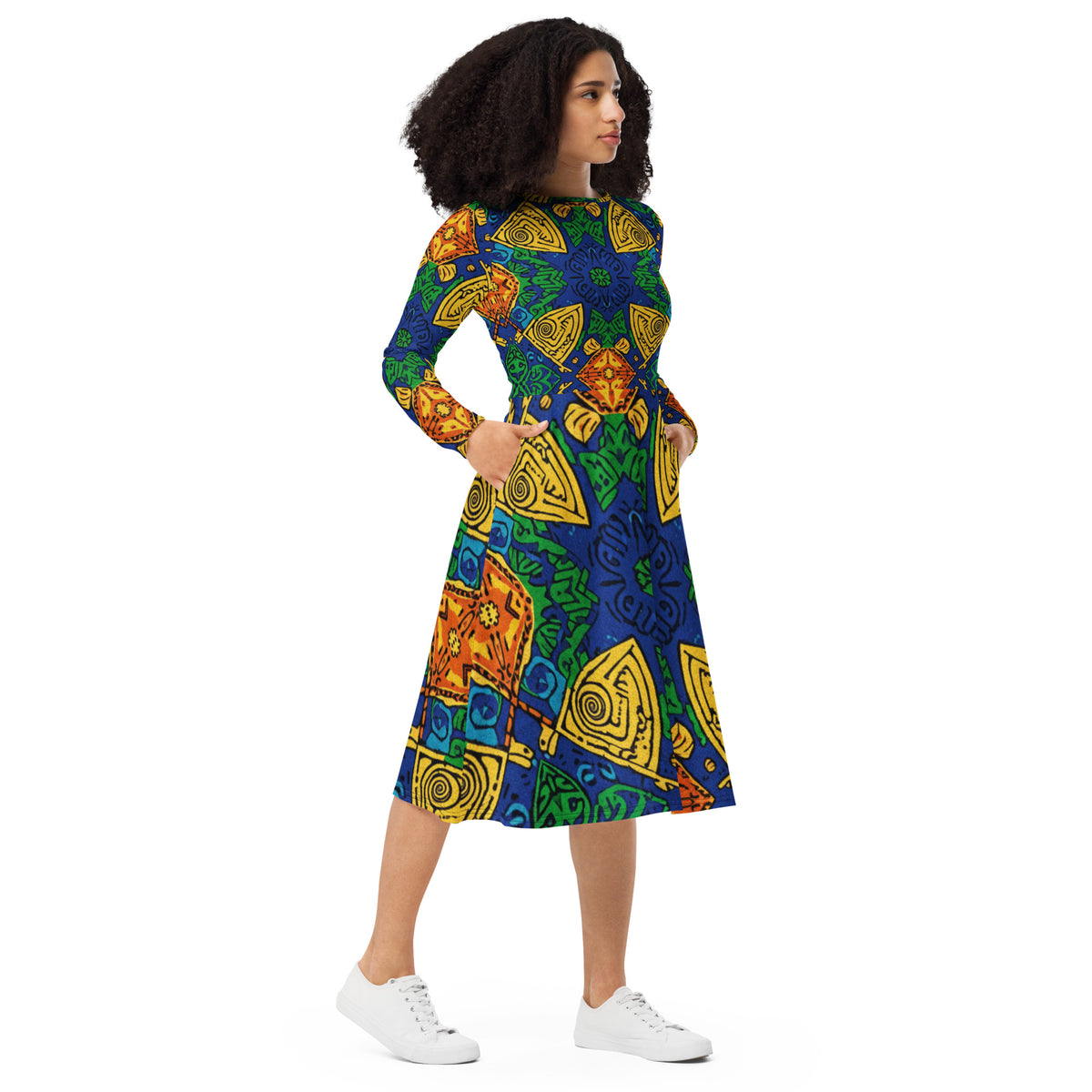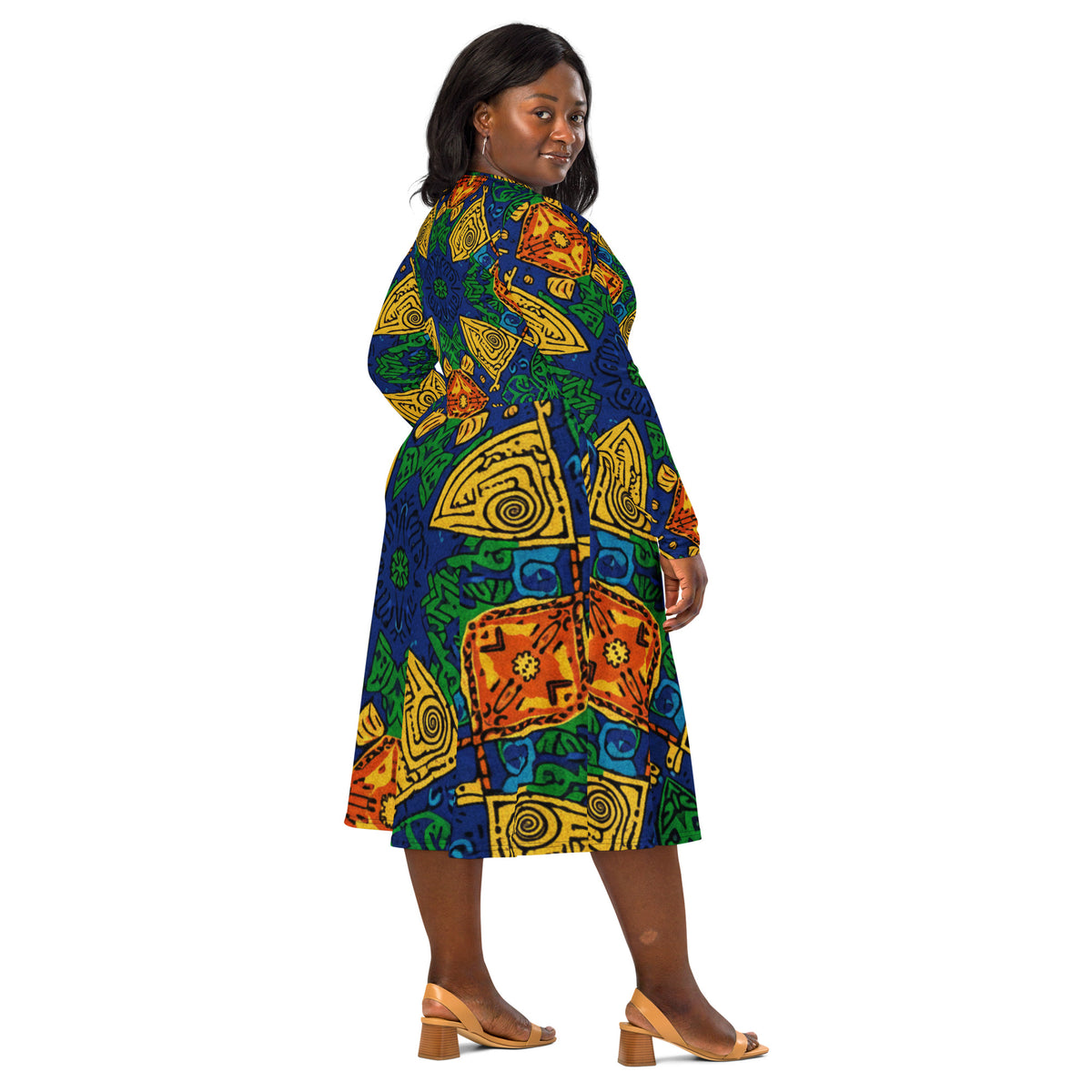 All-over print long sleeve midi dress