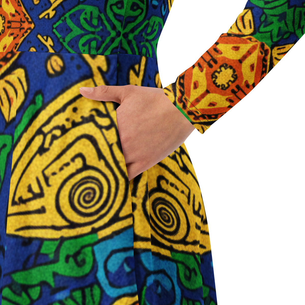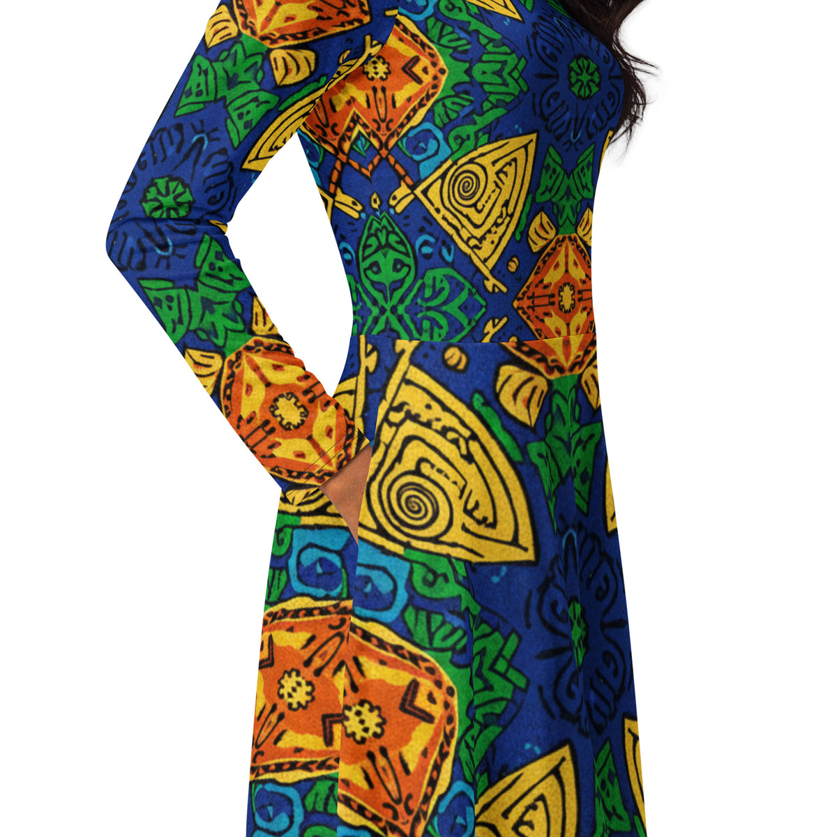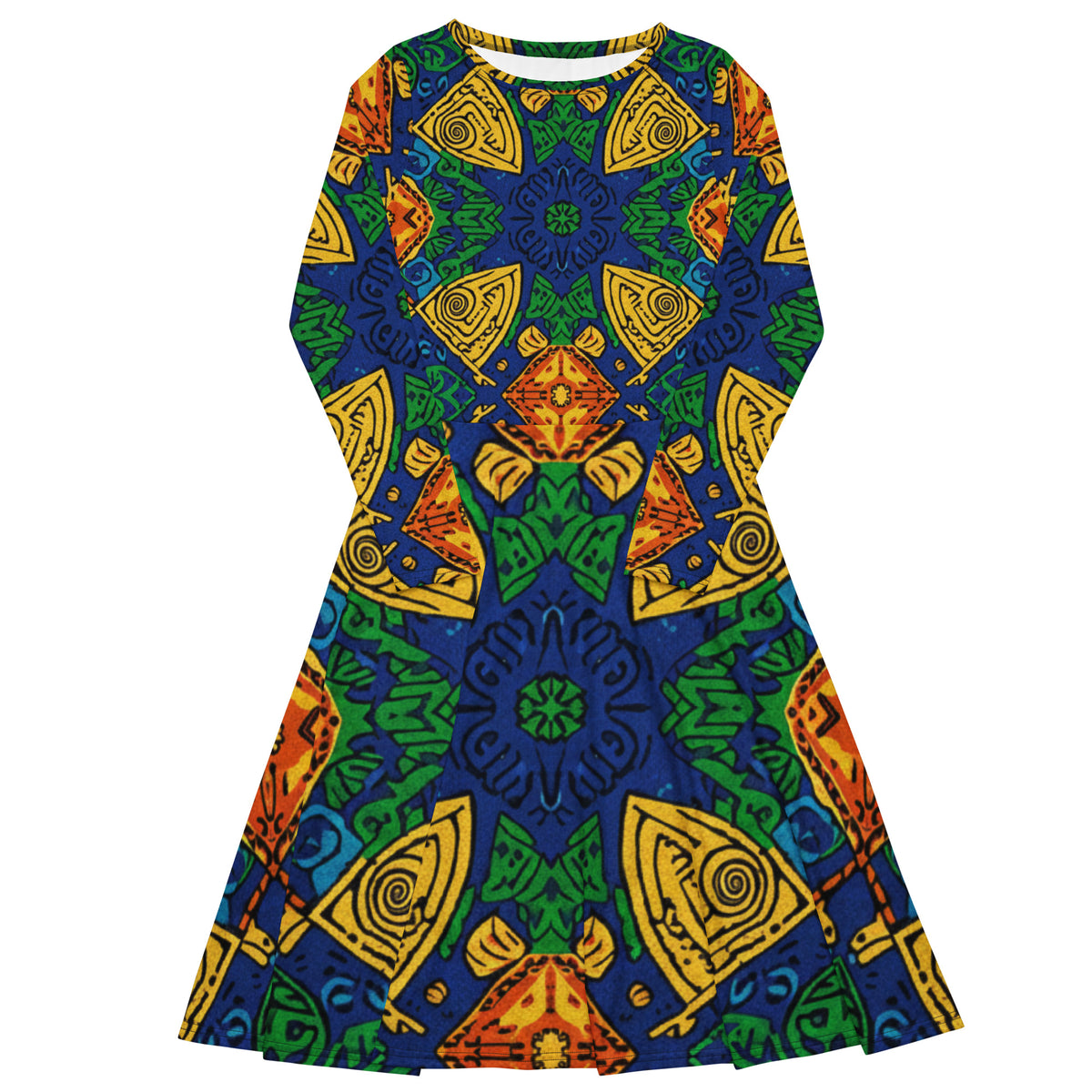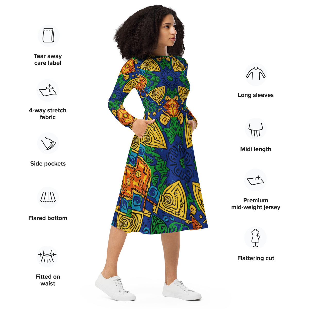 All-over print long sleeve midi dress